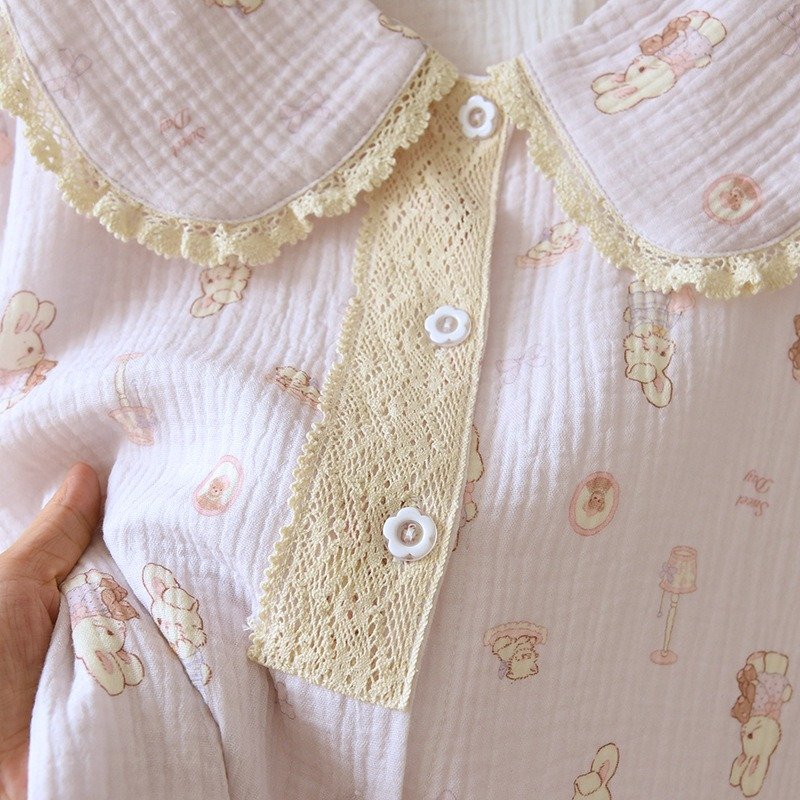 The Amorie Pyjamas capture the tenderness of soft mornings and cozy nights with their delicate lace collar and nostalgic teddy prints. Light, airy, and irresistibly charming — a touch of childhood sweetness reimagined in timeless elegance.