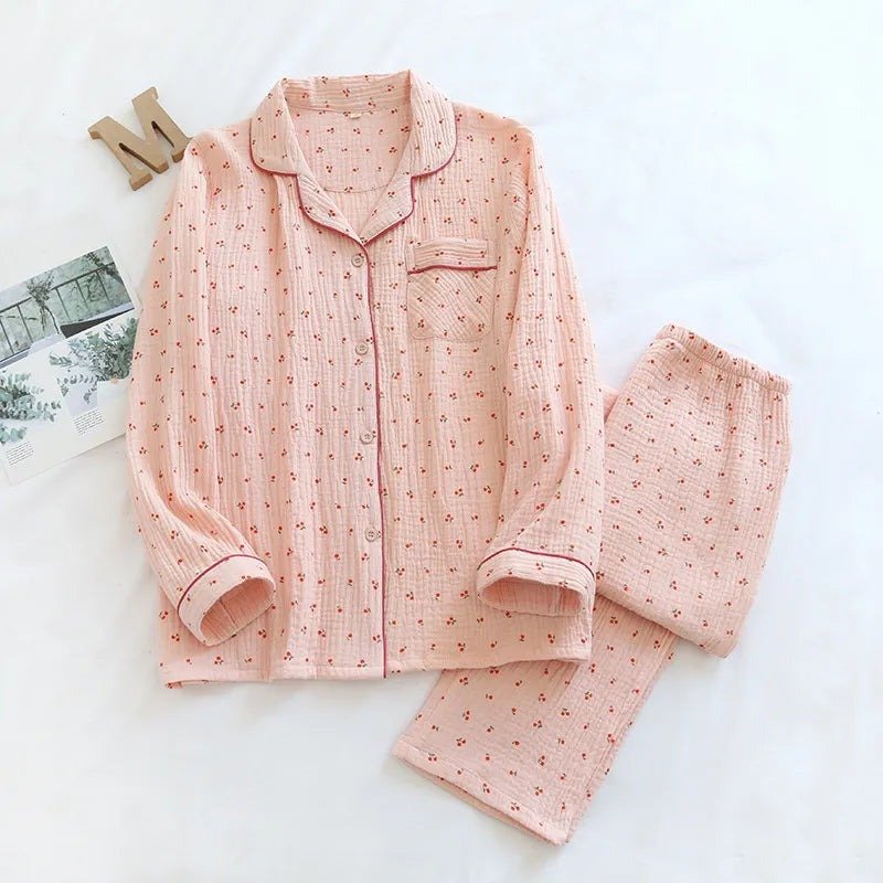 The Blush Cherry Pyjamas bring playful charm to your nights with delicate cherry-inspired prints in soft pastel tones. Gentle on the skin and light in feel, this set makes bedtime as cozy as it is stylish.